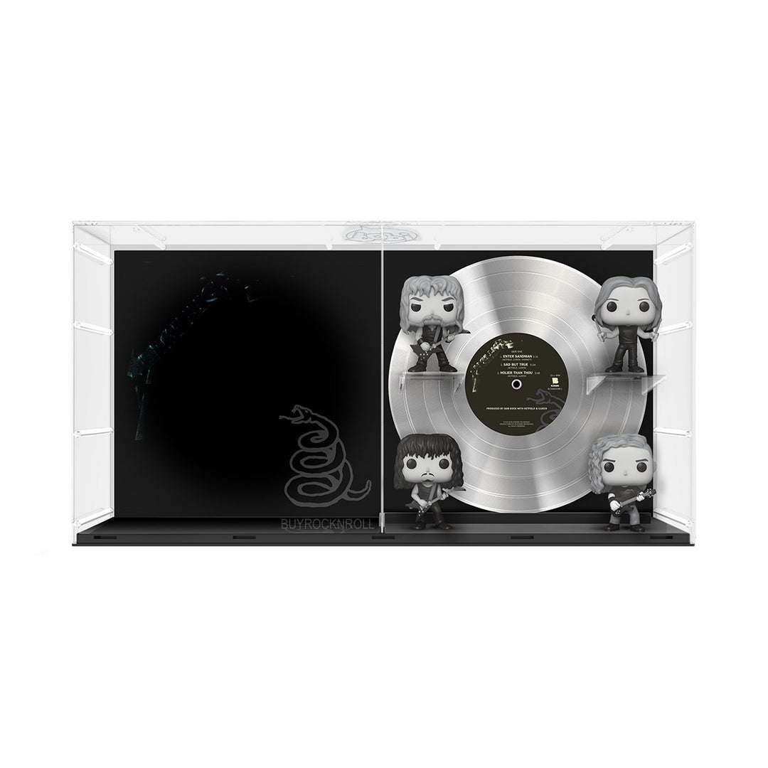 It’s been 30 years since Metallica released their self-titled album Metallica and we’re celebrating by releasing the exclusive Deluxe Pop! Album Metallica. Never forget the iconic album or the music of Metallica by collecting this Deluxe Pop! Album Metallica which features each of the band members as Pop! figures and the album cover art packaged together in a protective hard case that can be hung on a wall. Pop! James Hetfield, Pop! Lars Ulrich, Pop! Kirk Hammett, and Pop! Jason Newsted are grayscale collectibles made to match the album’s color scheme.