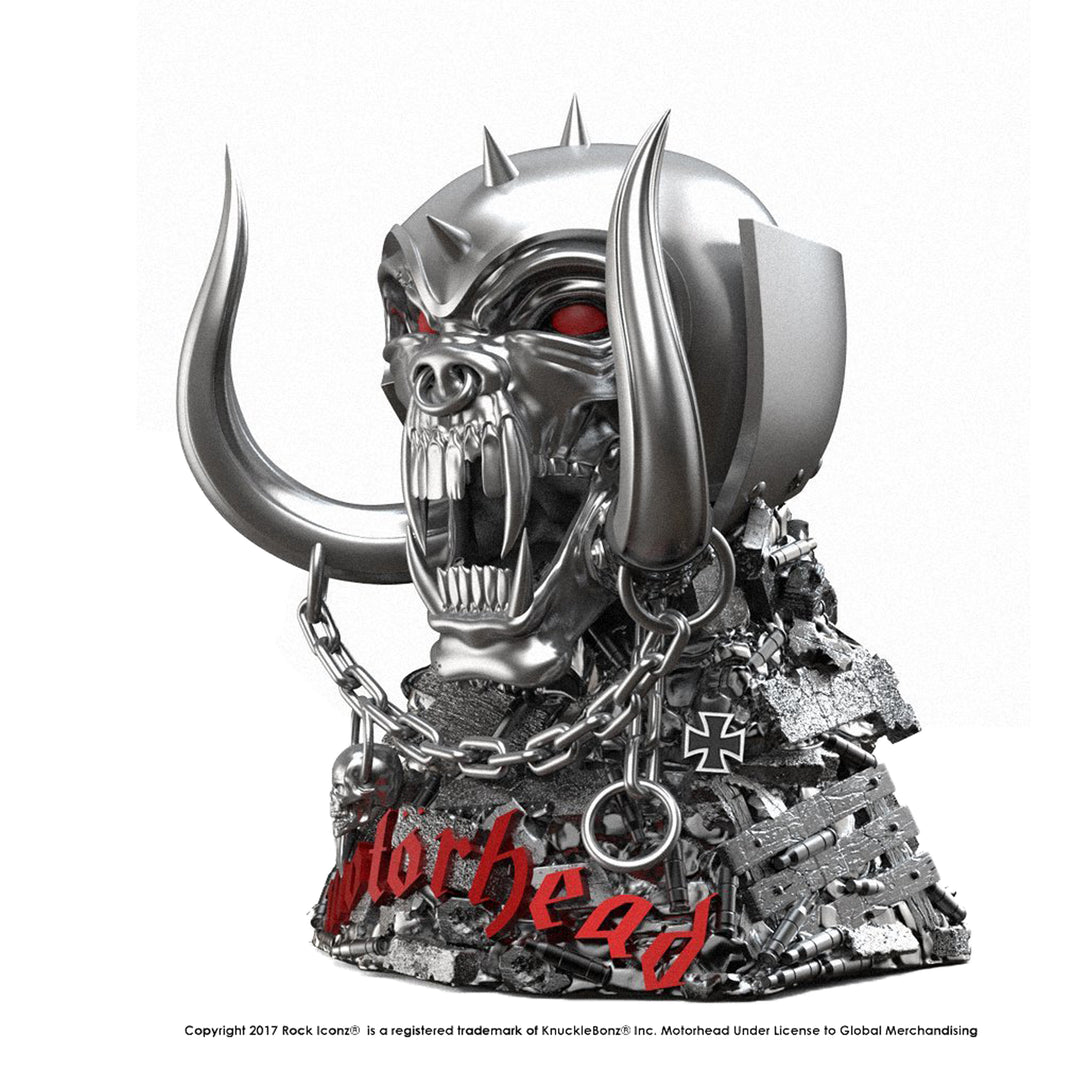 Loud, fast, and thrash defined the legendary English rock band, Motorhead, to their legion of fans throughout the world. The Motorhead Warpig is the band’s distinctive logo that appeared on their first Motorhead album and also on ensuing albums in different variations. The Warpig statue is cast in polyresin and features Snaggletooth’s iconic look on top a Motorhead logo base.
