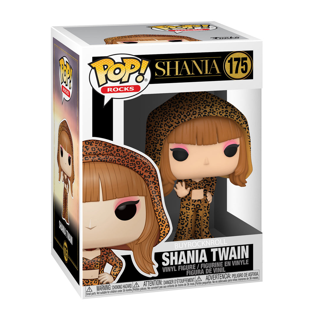 The figuring depicting Twain sees the singer dressed in the iconic outfit she wore in the music video for her 1997 hit, “That Don’t Impress Me Much,” complete with a hooded leopard-print cape and matching tube top and pants.