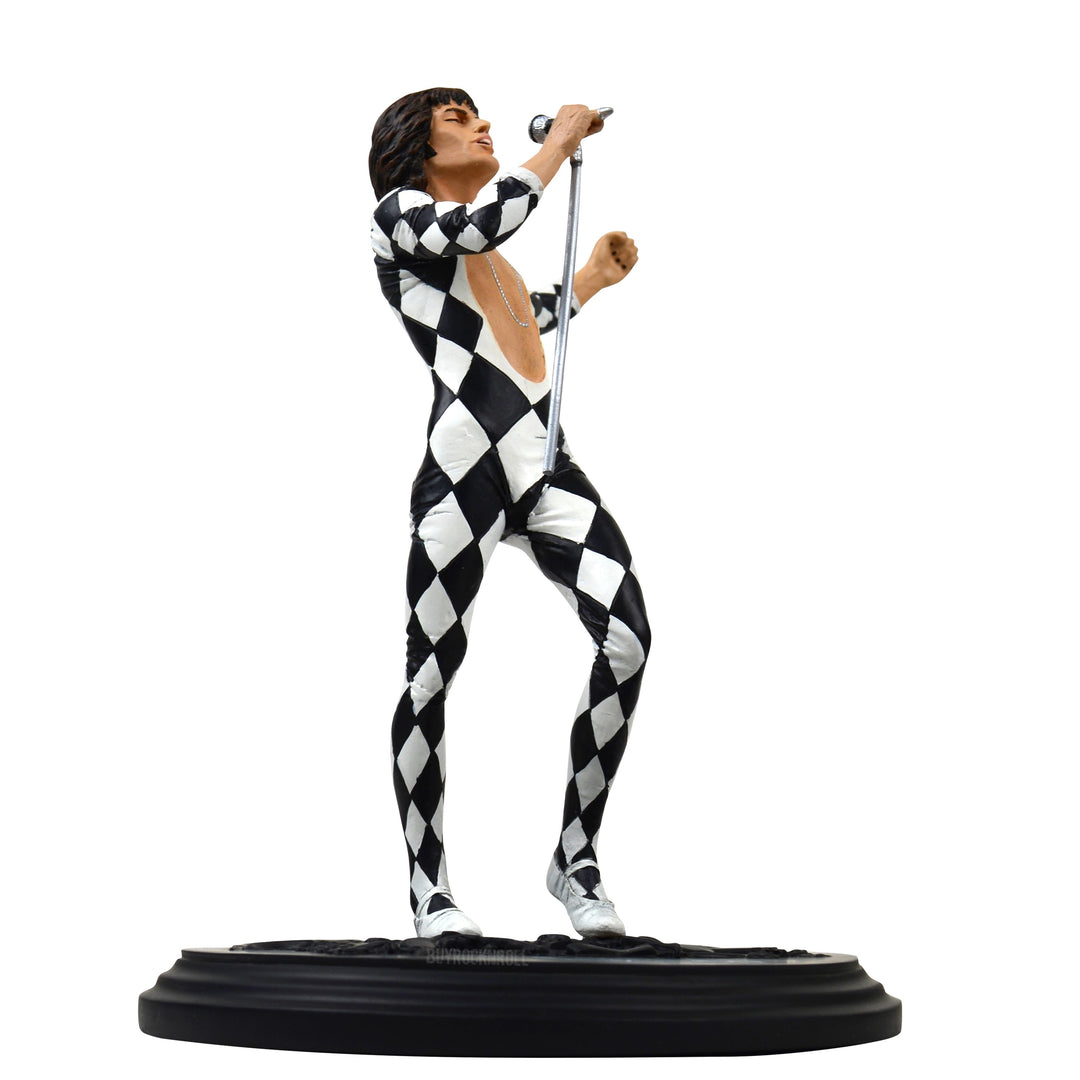 The fabulously flamboyant Freddie in a clearly identifiable frontman pose in this limited edition hand-painted statue. He stands on a Queen-themed base that has a hand-numbered certificate of authenticity printed on the bottom of the base. The cast resin statue has been created in 1/9 scale, which makes Freddie Mercury stand approximately 9″ tall on his base.