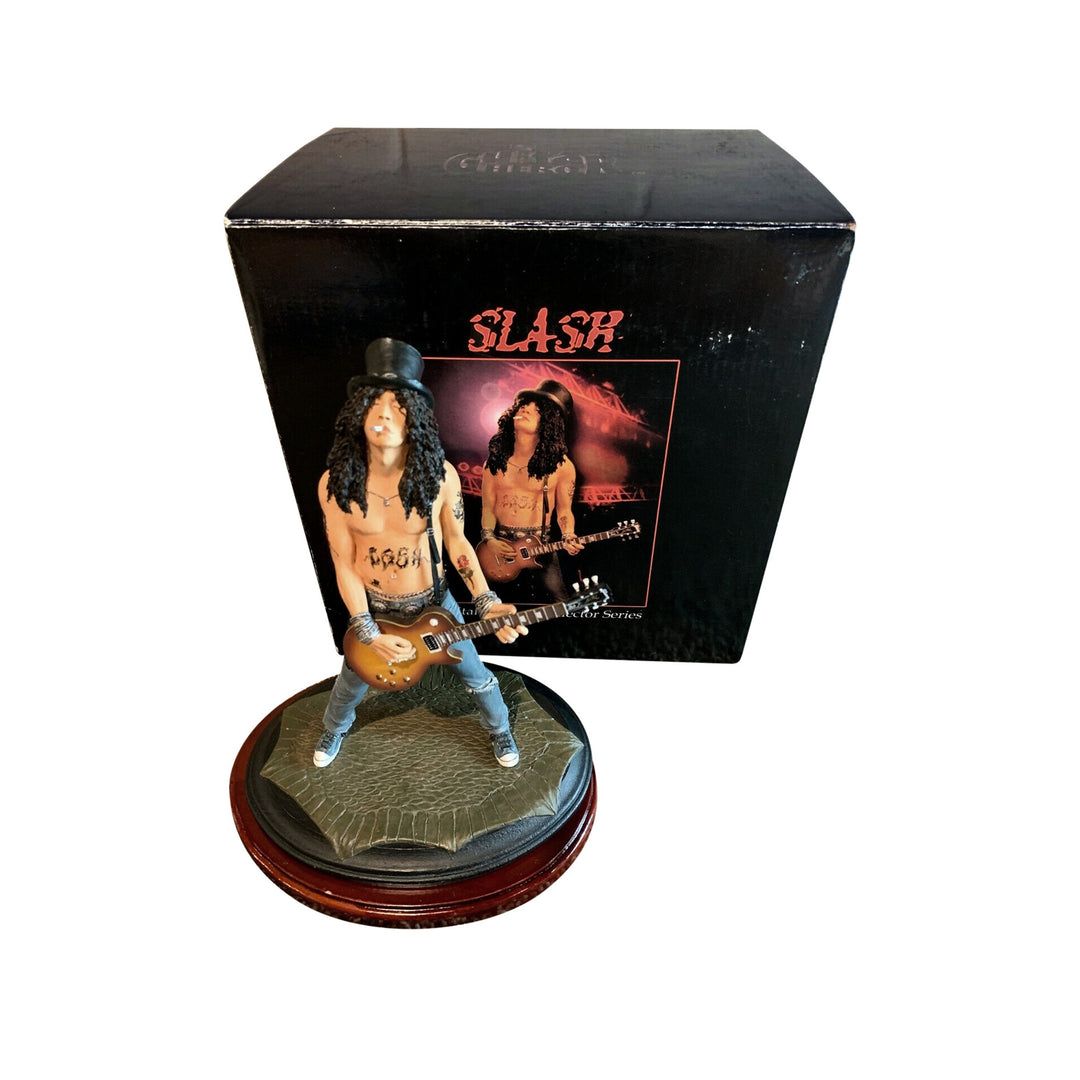 One of the most sought-after pieces from the KnuckleBonz Rock Iconz Series is this limited edition statue of guitarist Slash with his Les Paul guitar. “Guitars are like women. You’ll never get them totally right.”