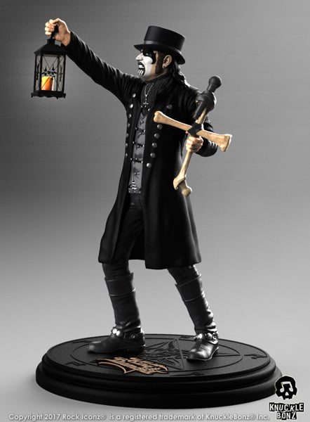 The King Diamond Rock Iconz Ltd. Edition statue stands approximately 8 inches tall from the bottom of his boots to his hat. The statue base is roughly 5.5 inches in diameter.
