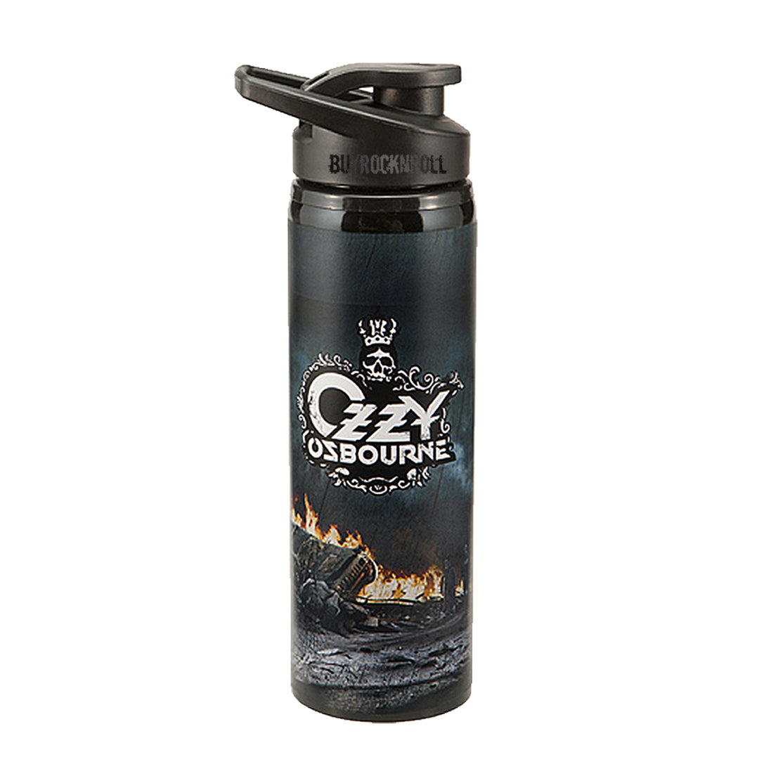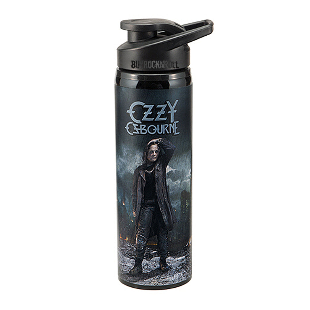 The 27 oz. Ozzy Osbourne Water Bottle features a flip-top design and measures 9 1/2-inches tall x 2 3/4-inches in diameter. Constructed of stainless steel, it’s eco-friendly, non-toxic, reusable, recyclable… and cool! Hand wash recommended.