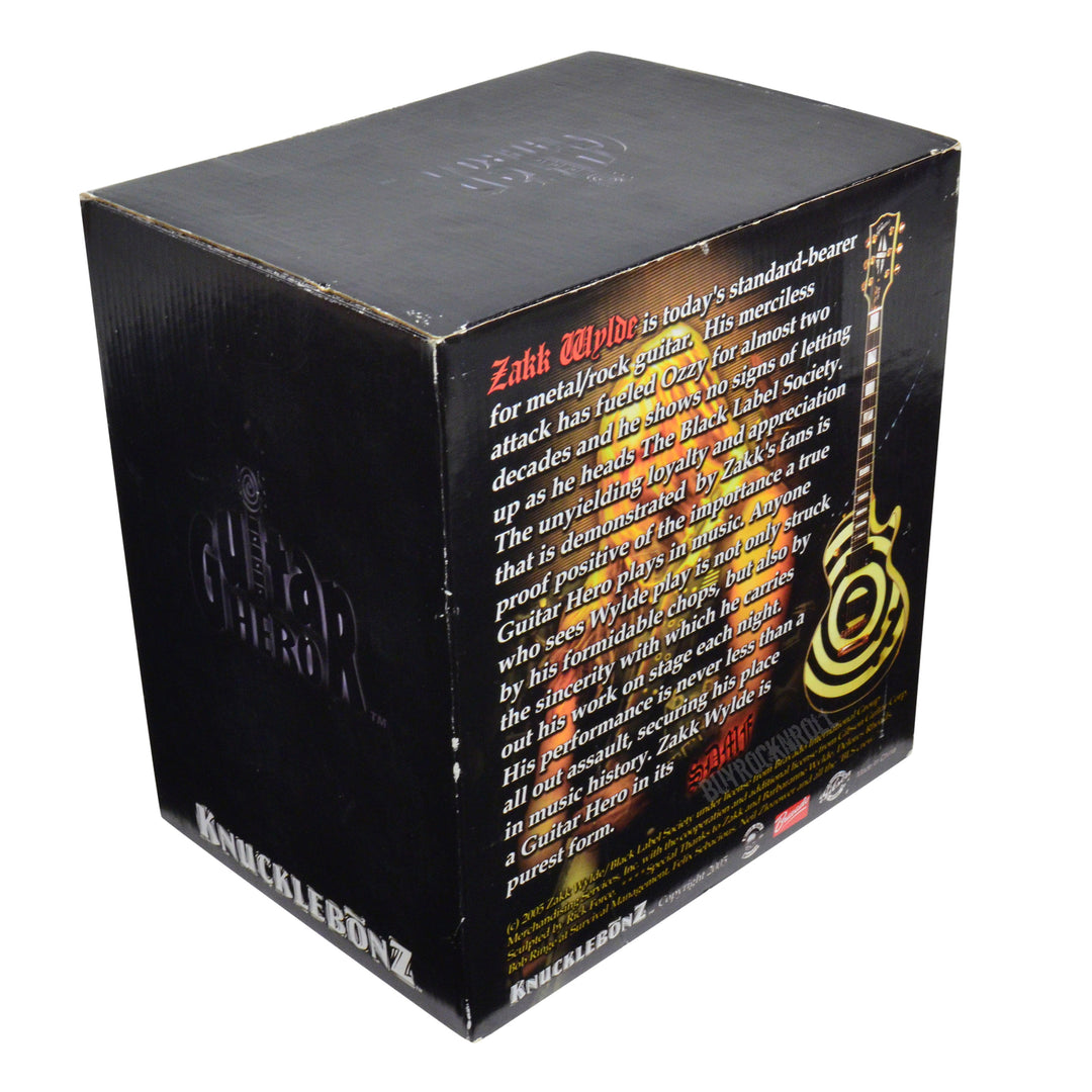 This shocking 9-inch sculpture presents a startlingly realistic likeness of Zakk Wylde with his signature black-and-white Bullseye Gibson Les Paul. It’s an officially licensed product from Zakk Wylde and Gibson Guitars, and a limited edition of 3,000 pieces. Zakk is cast in a polyresin, hand-numbered, hand-painted in marvelous detail, and displayed on a hard-to-believe wooden base.